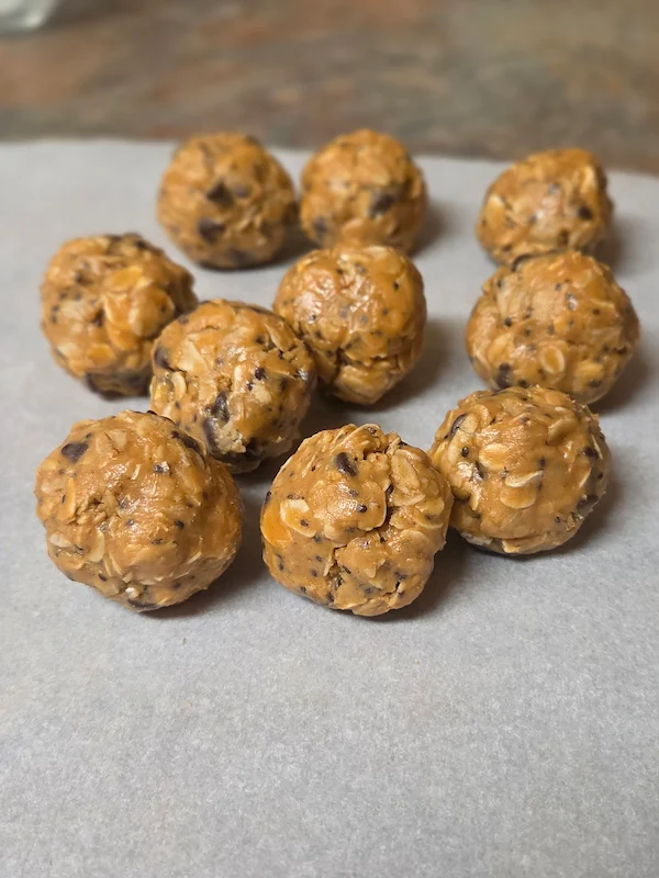 - Take out of the fridge and roll them into balls (Size does not matter)